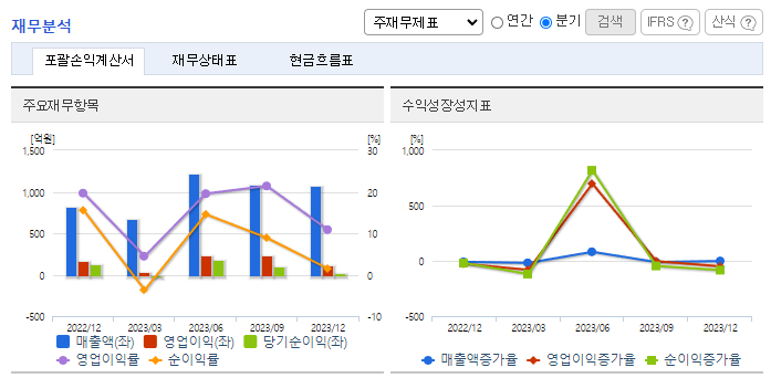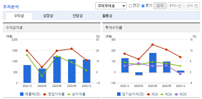 -2023년 9월 전년동기 대비 연결기준 매출액은 26.6% 증가, 영업이익은 23.4% 감소, 당기순이익은 42.5% 증가. 동사는 자체개발한 송출 기술을 바탕으로 타사 대비 가격 경쟁력을 확보하고 있으며, 국내 1위 사업자 지위를 수성하고, 향후 그 지위가 지속될 것으로 판단됨. 송출사업은 고화질의 송출에 대한 부가가치가 높은 바, 향후 HD에서 UHD급 이상의 송출서비스 전환으로 수익성이 상승될 것으로 기대하고 있음.