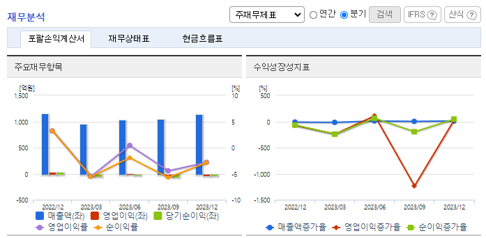-2023년 9월 전년동기 대비 연결기준 매출액은 26% 감소, 영업이익 적자전환, 당기순이익 적자전환. 폐배터리 재생 사업부에성 매출이 발생하기 시작하였으나 영업손실이 발생하였음. 이외에도 주요 사업부인 반도체 사업부에서 매출이 감소하여 전반적인 사업수익이 감소 매출 다변화의 일환으로 대만 및 일본, 미주 등 해외시장 개척 활동을 적극적으로 전개하고 있으며, 고객사의 다각화를 계획하고 있음.