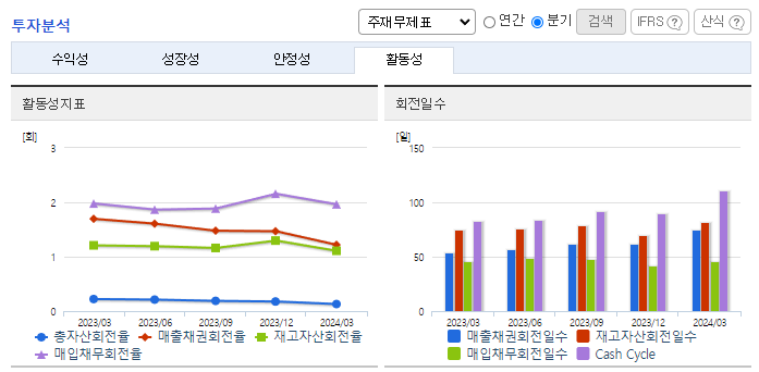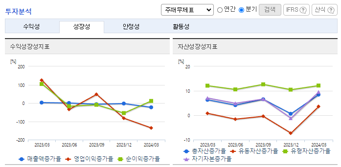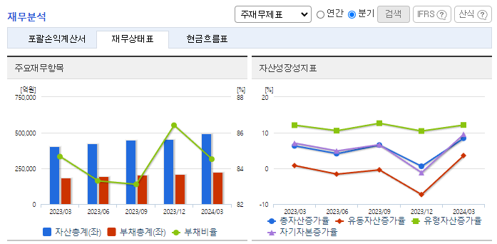 -2024년 3월 전년동기 대비 연결기준 매출액은 29.9% 감소, 영업이익 적자전환, 당기순이익 적자전환. 2024년 당기 중 신·증설 투자 및 품질 강화 투자 등에 총 2.9조 원을 사용하였음. 해외 전기차 수요 감소로 수출 매출이 크게 감소하였으며, 영업이익은 1,573억 원을 기록하였으나, 미국 IRA Tax Credit 세액 공제 금액을 제외하면 영업이익 적자전환.