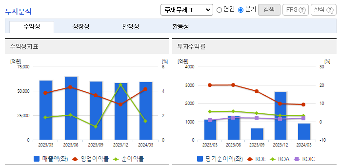 -2024년 3월 전년동기 대비 연결기준 매출액은 2.5% 감소, 영업이익은 5.3% 증가, 당기순이익은 48.8% 감소. 동사는 LS상표권의 소유주로서 상표권 사용료는 상표권을 사용하는 회사의 매출액을 기준으로 산정되며, 2023년 인식한 상표권 사용수익은 424억 원임. 해저케이블의 업황이 개선되어 동사의 2024년 향후 실적에 긍정적으로 작용할 것이 기대되고 있음.