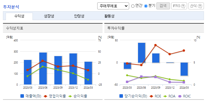 -2024년 3월 전년동기 대비 연결기준 매출액은 6.9% 감소, 영업이익은 11.9% 감소, 당기순이익 흑자전환. 2023년에는 경기침체 등으로 인해 주류판매가 감소하여 주정 판매량이 2.21% 감소하였으며 금년에도 주정 소비량도 경기침체 및 저도주 소비가 늘어나면서 전년도 보다 감소할 것으로 예상됨. 주정은 타피오카와 쌀보리 등 곡물로 만드는데, 최근 비용 부담이 커지면서 인상이 불가피하게 되었음.