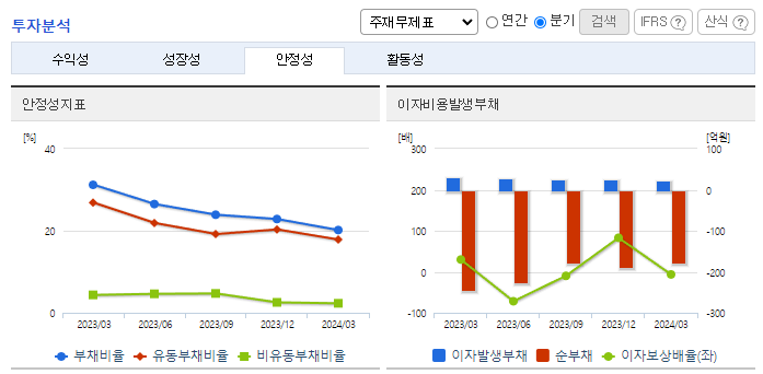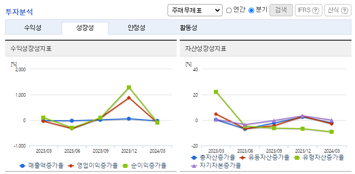 -2024년 3월 전년동기 대비 별도기준 매출액은 14.2% 감소, 영업이익 적자전환, 당기순이익은 99.1% 감소. 경기침체의 원인으로 교육서비스 사업, 영어레벨테스트(NELT) 등 제품의 수익이 대폭 감소하고, 종업원 급여 등 비용 증가로 매출 및 영업이익 하락함. 동사는 맘챌, 키바조이 등 경영 개선 사업 부문에서 운영효율성을 높여 사업손익을 개선하기 위해 노력하였음.
