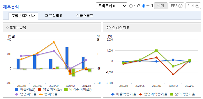 -2024년 3월 전년동기 대비 연결기준 매출액은 16.6% 증가, 영업손실은 244.7% 증가, 당기순손실은 190.5% 증가. 태양광사업부의 매출 증가에도 불구하고 원가 상승 등으로 수익성 악화가 확대되었음. 정부의 그린뉴딜, NDC 상향 및 2050년 탄소중립을 달성하기 위해 신재생에너지의 확대가 불가피하며, 이로 인하여 RPS 공급의무량 비율 또한 기존 2021년 9% 비율에서 2026년 25%로 확대될 예정임.