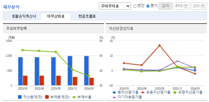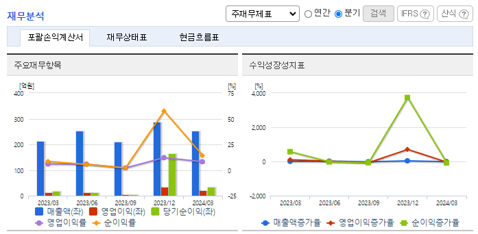 -2024년 3월 전년동기 대비 연결기준 매출액은 18.4% 증가, 영업이익은 62.9% 증가, 당기순이익은 96.6% 증가. 자동차 업황 회복에 가시화됨에 따라 매출이 증가하였으며 판관비 등 영업비용이 매출 증가분보다 적게 증가함에 따라 영업이익이 증가함. 자산양수도 계약을 통해 충청남도 예산군 예산읍에 소재한 토지 및 지장 물건을 양수도대금 290억에 양도 완료함.