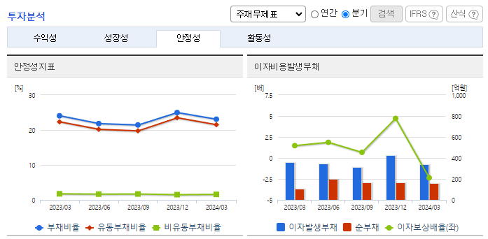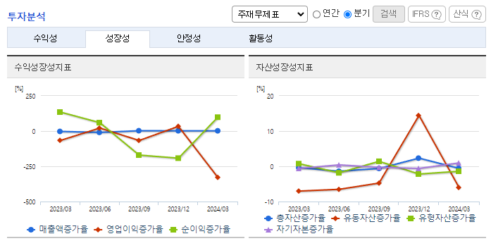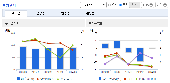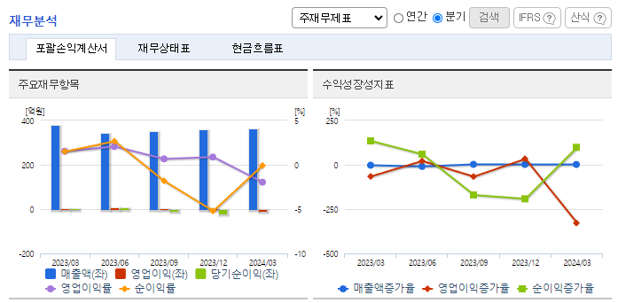 -2023년 12월 전년동기 대비 연결기준 매출액은 11.3% 감소, 영업이익은 74.5% 감소, 당기순이익 적자전환. 소비심리가 위축되는 경기침체 속에서 의류수출부문과 패션사업부문 모두 외형감소로이어 져 전년대비 매출이 11.3% 역신장 했음. 제품 적중률 향상, 온라인 수익성 개선, 소싱 구조 개선을 통한 원가절감으로 외형확대 및 수익률 개선을 이루는 게 2024년 동사의 주요 목표임.