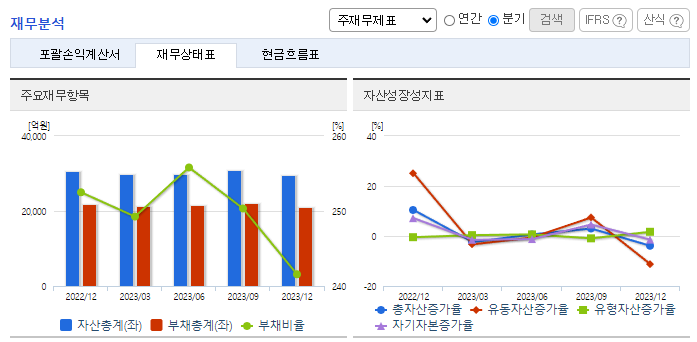 -2023년 9월 전년동기 대비 연결기준 매출액은 17.6% 증가, 영업이익은 34.2% 감소, 당기순이익은 48.1% 감소. 매출이 증가하였으나 건설 및 부동산 사업부의 영업이익이 96.23% 감소하는 하였고 국내의 매출이 17.7% 증가하였으나 영업이익이 33.06% 감소하는 등 영업비용의 증가로 영업이익 감소함. 2023년 11월까지 약 570억 가량을 투자하여 CCU 기술 개발 참여 및 사업화 확대를 진행하고 있음.