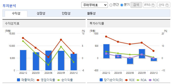 -2023년 9월 전년동기 대비 연결기준 매출액은 17.6% 증가, 영업이익은 34.2% 감소, 당기순이익은 48.1% 감소. 매출이 증가하였으나 건설 및 부동산 사업부의 영업이익이 96.23% 감소하는 하였고 국내의 매출이 17.7% 증가하였으나 영업이익이 33.06% 감소하는 등 영업비용의 증가로 영업이익 감소함. 2023년 11월까지 약 570억 가량을 투자하여 CCU 기술 개발 참여 및 사업화 확대를 진행하고 있음.