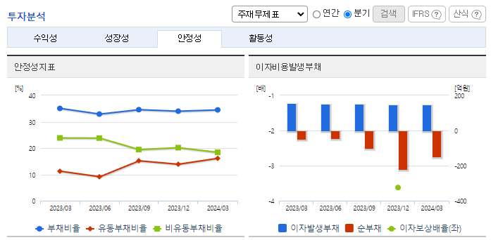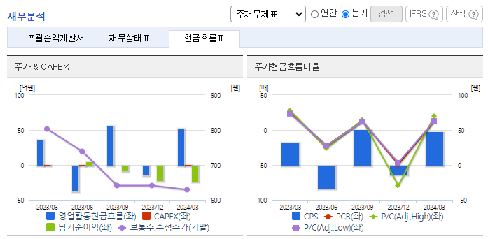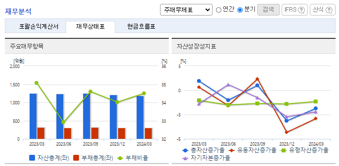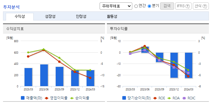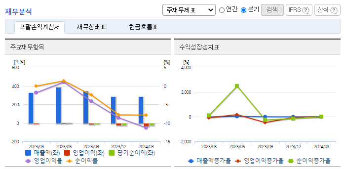 -2024년 3월 전년동기 대비 연결기준 매출액은 12.3% 감소, 영업손실은 434.9% 증가, 당기순손실은 10159.1% 증가. 최근 업계는 건설경기 하락 및 저품질 수입제품의 확대 등으로 국내 범용제품의 수요가 감소하는 추세에 있는 반면에 강화된 정부의 품질기준을 충족한 제품 수요가 높아짐. 동사는 현재 보유한 광권에 대해 에너지시장의 변화 양상을 주시하며 적절한 시점이 도래할 때까지 현 생산정 생산을 유지할 전망.