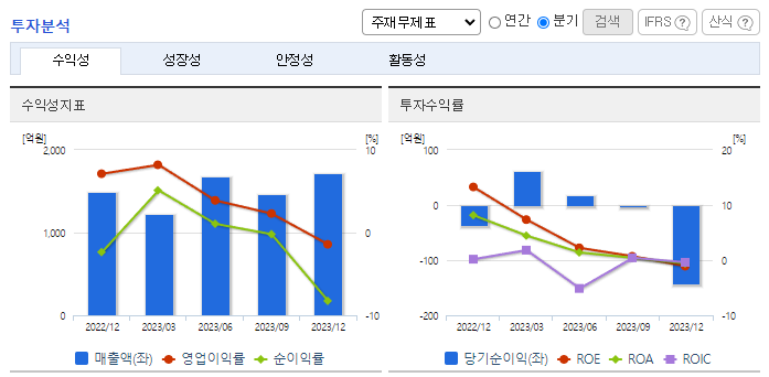 -2023년 12월 전년동기 대비 연결기준 매출액은 9.3% 감소, 영업이익은 85.3% 감소, 당기순이익 적자전환. 프레스 제품 매출 호조와 비철금속 트레이딩 매출이 신규 발생했음에도 불구하고 주력인 합금철 시장에서 부진하며 전체 외형은 소폭 축소됨. 원가율 악화로 영업이익이 크게 감소. 기술 영업을 바탕으로 홍보 전략 다변화, 고객 수요에 적합한 기종 개발, 해외 설비 투자 분에 대한 적극 대응을 통해 노력 중.