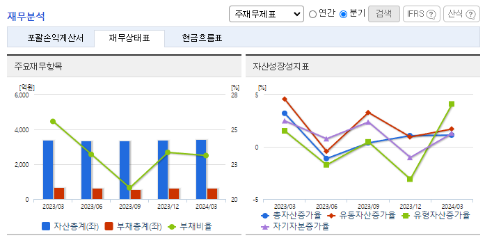 -2024년 3월 전년동기 대비 연결기준 매출액은 6.7% 증가, 영업이익은 18.1% 감소, 당기순이익은 24.3% 감소. 전 사업부문 고른 성장세로 외형은 확대되었으며, 고정비 동반 성장으로 영업이익은 감소세를 보임. 향후 전기차시대에도 자동차부품기업의 입지를 다지고자, ZLTube 기술을 개발한 엠에이치기술개발에 지분투자하여 경영권을 획득하였으며, 동사의 마케팅력을 이용해 영업활동 중임.