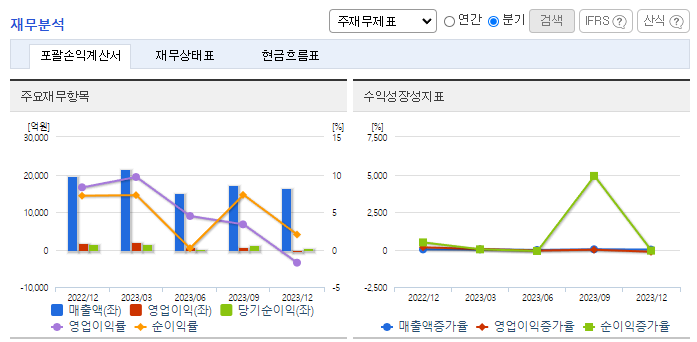 -2023년 9월 전년동기 대비 연결기준 매출액은 12.3% 감소, 영업이익은 45.3% 증가, 당기순이익은 142.4% 증가. LPG 국제가격 하락에 따른 판가 하락이 있었음에도 불구하고, 파생상품 관련 이익이 반영되면서 영업이익은 대폭 증가하였음. 주요 종속회사인 울산지피에스(주)는 LNG/LPG가스 복합화력발전 사업을 추진하는 회사로, 2024년 9월 상업가동 예정으로 현재는 사업추진과정에서의 제반 비용만 발생하고 있음.