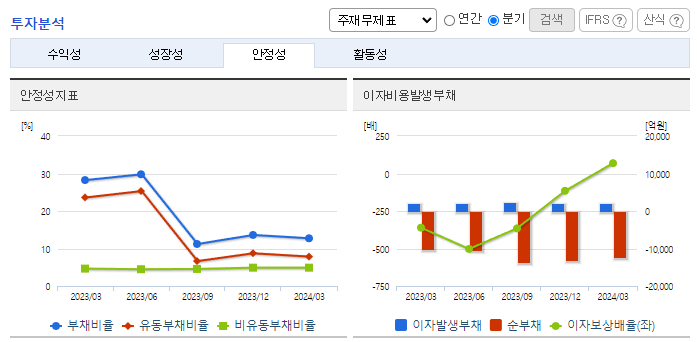 -2024년 당분기의 연결기준 매출액 885,673백만 원, 영업이익 323,755백만 원, 당기순이익 333,285백만 원 달성함. '23년부터 손익계산서 상 지분법 손익을 매출에서 제외하고 별도로 표시함. 지분법 이익이 흑자로 전환됨. 비즈니스 안정화를 위한 포트폴리오 최적화를 추진하고 있음. 매출 확대를 위한 제품 구성 다양화, 수익 구조 개선을 위한 고부가가치 제품 발굴, 지역별 특성을 고려한 제품 차별화 전략 진행 중임.