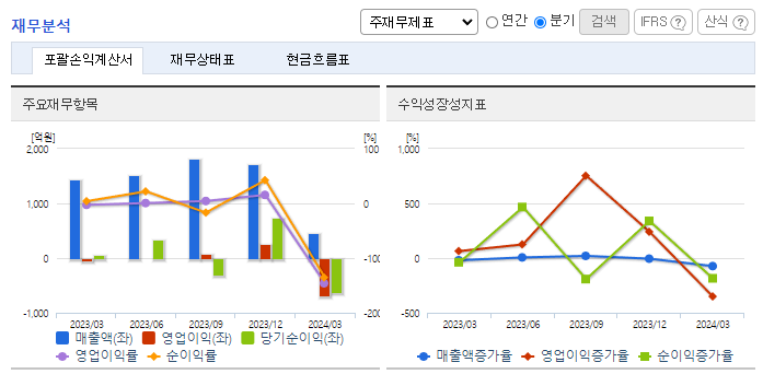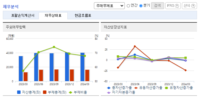 -2024년 3월 전년동기 대비 연결기준 매출액은 67.7% 감소, 영업이익 적자전환, 당기순이익 적자전환. 2024년 1분기 말 기준 총 생산 Capability는 15.3㎡임. 폴란드에 생산라인 추가 증설을 추진 중이며, 빠르게 성장 중인 EV 시장을 주요 타깃으로 하여 고품질 분리막 판매를 확대하고 있음. FCW 사업의 영업중단을 결정한 후, 당분기말 현재 관련 자산에 대한 매각 및 철수작업을 진행 중임.