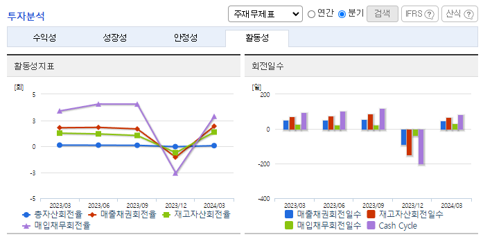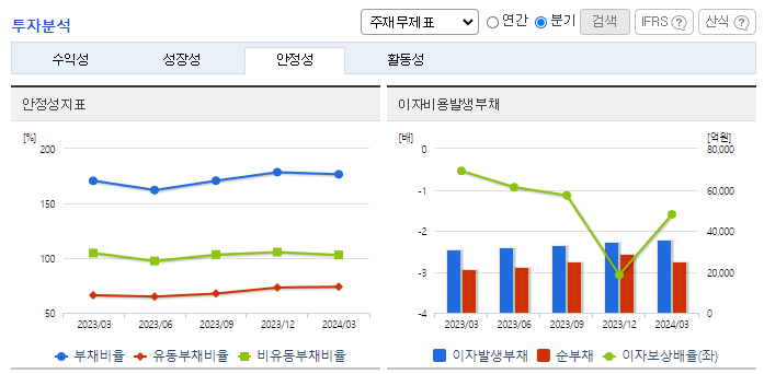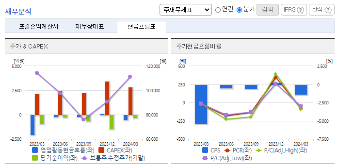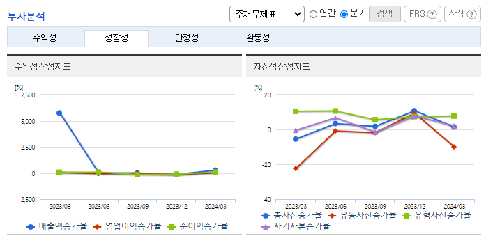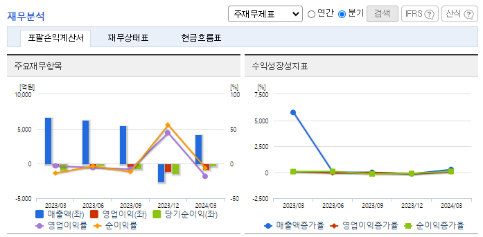 -2024년 3월 전년동기 대비 연결기준 매출액은 13.4% 감소, 영업손실은 163.8% 증가, 당기순손실은 67.3% 감소. 2024년 2월 사업구조 개편을 위해 SK엔펄스(주)의 파인세라믹 사업부문을 매각하였고 성장사업 투자확대를 위해 SK피유코어(주)를 매각하였음. 세금 및 보험료와 같은 판매비와 관리비, 인건비가 증가하면서 동사의 2024년 1분기 영업손실폭이 확대.