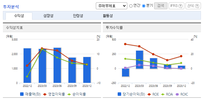 -2023년 12월 전년동기 대비 연결기준 매출액은 28.3% 감소, 영업이익은 37.3% 감소, 당기순이익은 38.5% 감소. 농기계부문은 고금리 기조에 따른 소비심리 위축과 농기계 시장의 축소로 매출액이 31.8% 감소. 같은 기간 담배필터부문은 63.9% 증가. 북미 내 판매지역 확대 및 유럽, 동남아 지역 수출 확대를 통해 꾸준히 성장해 나갈 예정. 자율주행 기술, 텔레메틱스 등 첨단기술 개발에도 힘쓰는 중.