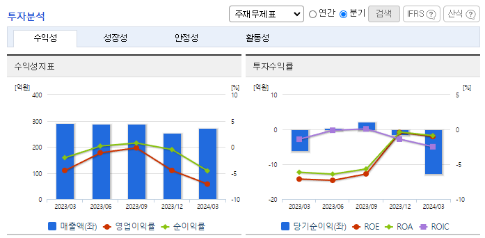 -2024년 3월 전년동기 대비 연결기준 매출액은 6.9% 감소, 영업손실은 46.9% 증가, 당기순손실은 107.3% 증가. 주원료, 부원료의 내수구매품목과 수입품목 비율은 94:6 내외를 형성하고 있고 수입품목의 주요 수입대상 국가는 중국, 태국, 일본 등임. 동사의 원재료 가격은 석유화학계통 제품이 대부분이기 때문에 주로 석유화학계통에서 파생된 BASE RESIN류, 가소제등 국제가와 환율 등락이 가격변동에 영향을 주고 있음.
