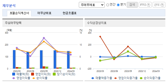-2024년 3월 전년동기 대비 연결기준 매출액은 5.1% 감소, 영업이익은 36% 감소, 당기순이익은 20.7% 감소. 지속적인 매출성장 및 영업실적 개선을 위해 동사는 인공지능, 빅데이터 기반의 영어학습 서비스제공, IT 직무교육 사업에도 집중할 계획. ㈜와이비엠넷은 2024년 3월 기준으로 387만 명 이상의 패밀리 회원과 470여 개의 B2B 회원사를 확보 중이며 신규 온라인 강좌의 지속적인 확충을 통해 견고한 회원 증가 추이.